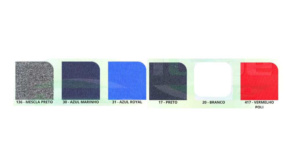 Confira abaixo as opções de cores e tamanhos disponíveis para as calças de helanca.